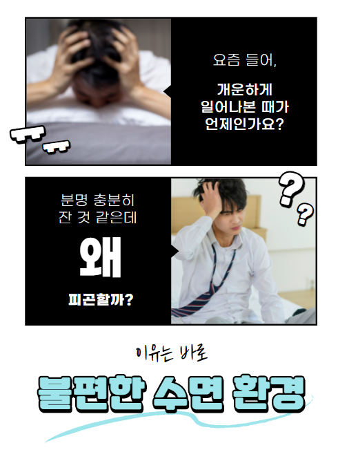 특히 개운하게 수면하지 못하고 항상 피곤하다면 노화가 일어날 수 있어 평소 적당한 수면이 매우 중요합니다.