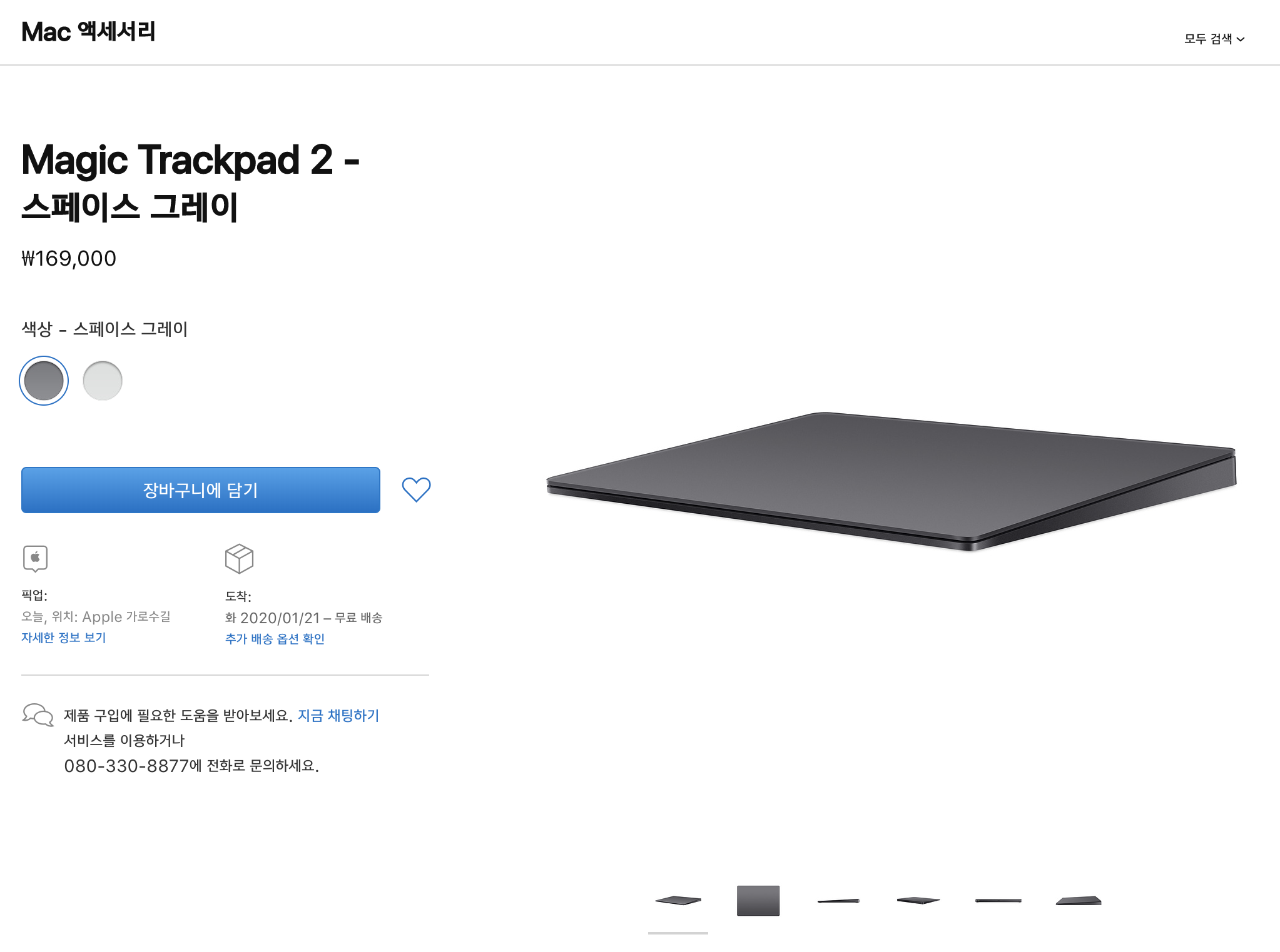 매직트랙패드2는 색상에 따라 금액차이가 있다. 스페이스 그레이와 실버의